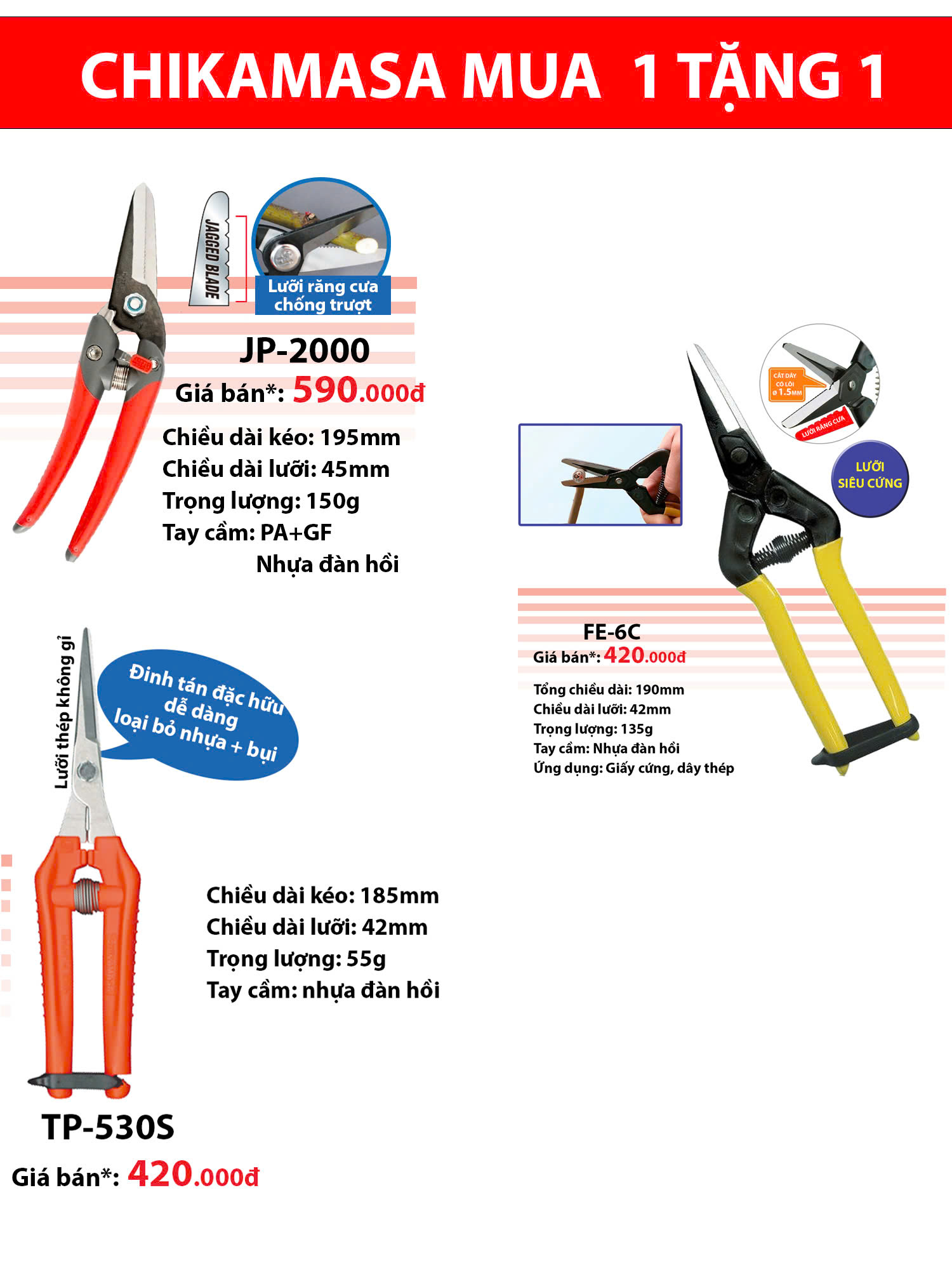 Chương trình MUA 1 - TẶNG 1 áp dụng với các loại kéo sau: