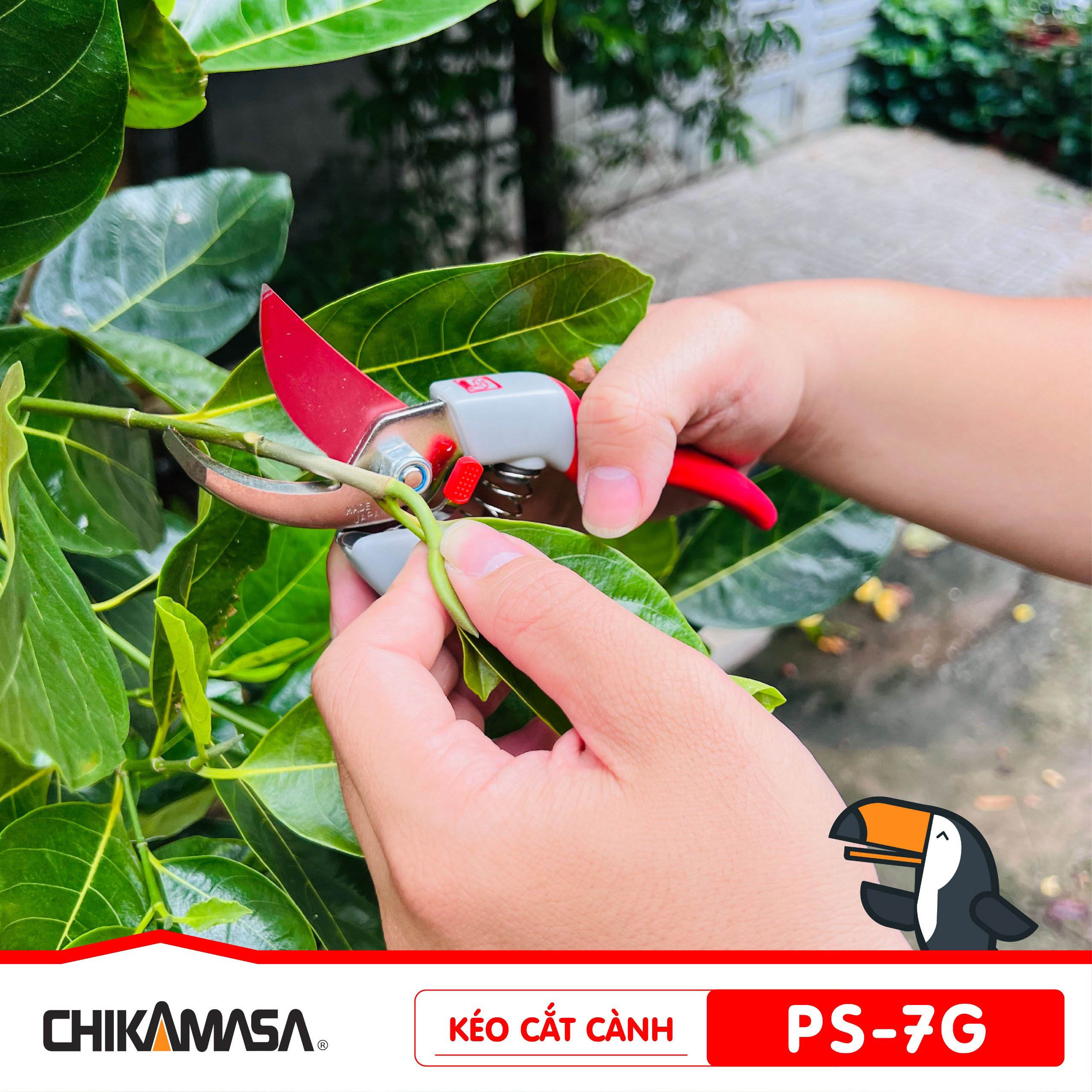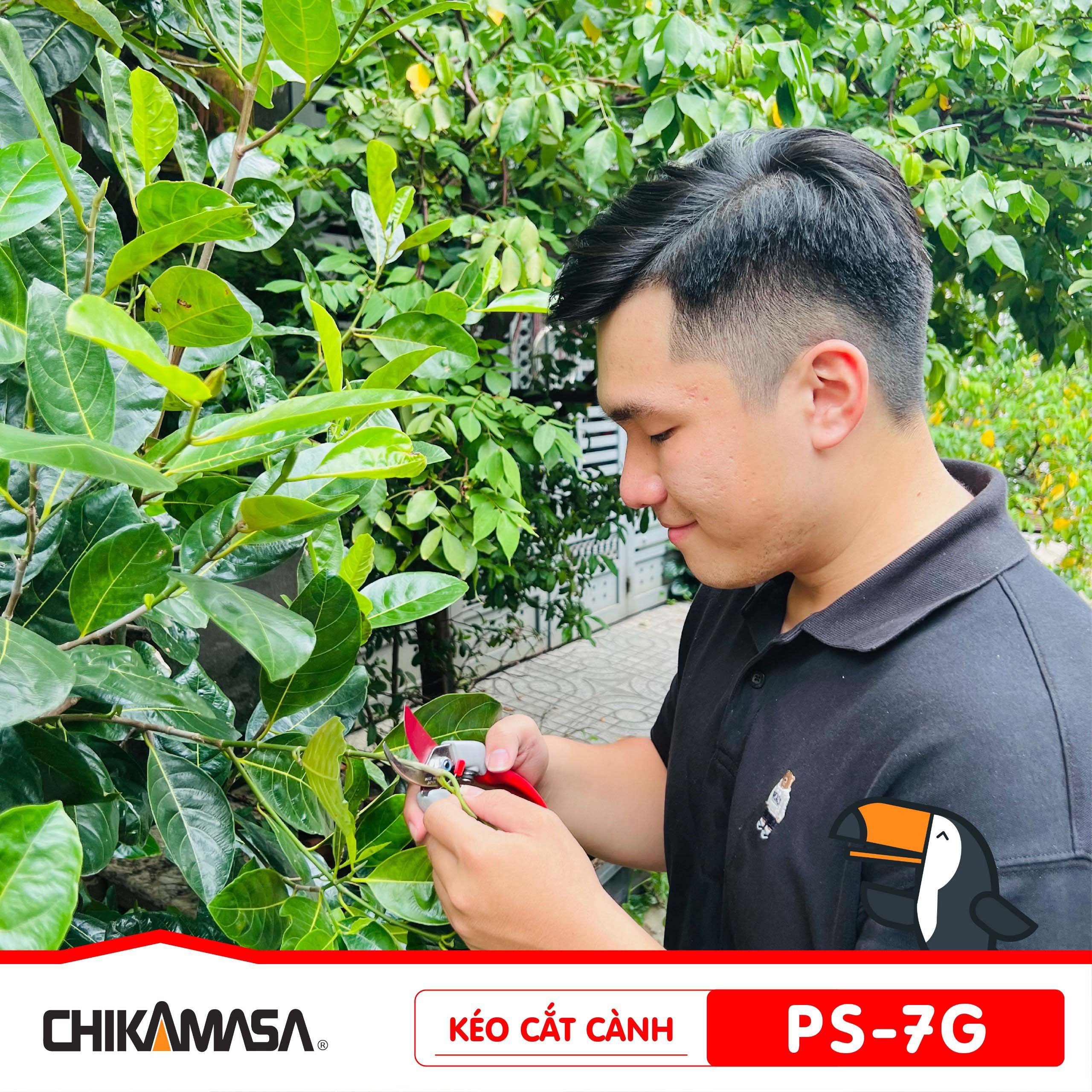 Đối tượng kéo cắt cành Nhật Bản hướng tới là cành nhánh chắc khỏe, dày mà những chiếc kéo mảnh khảnh không đủ sức chinh phục. Chikamasa PS-7G cũng có thể được sử dụng thu hoạch trái cây: bưởi, gấc, nhãn, sapoche, các loại quả cuốn cứng. Tuy nhiên vì mũi kéo nhọn nên anh em cần thao tác tỉ mỉ để không gây xước xát, chảy nhựa vị trí xung quanh.
